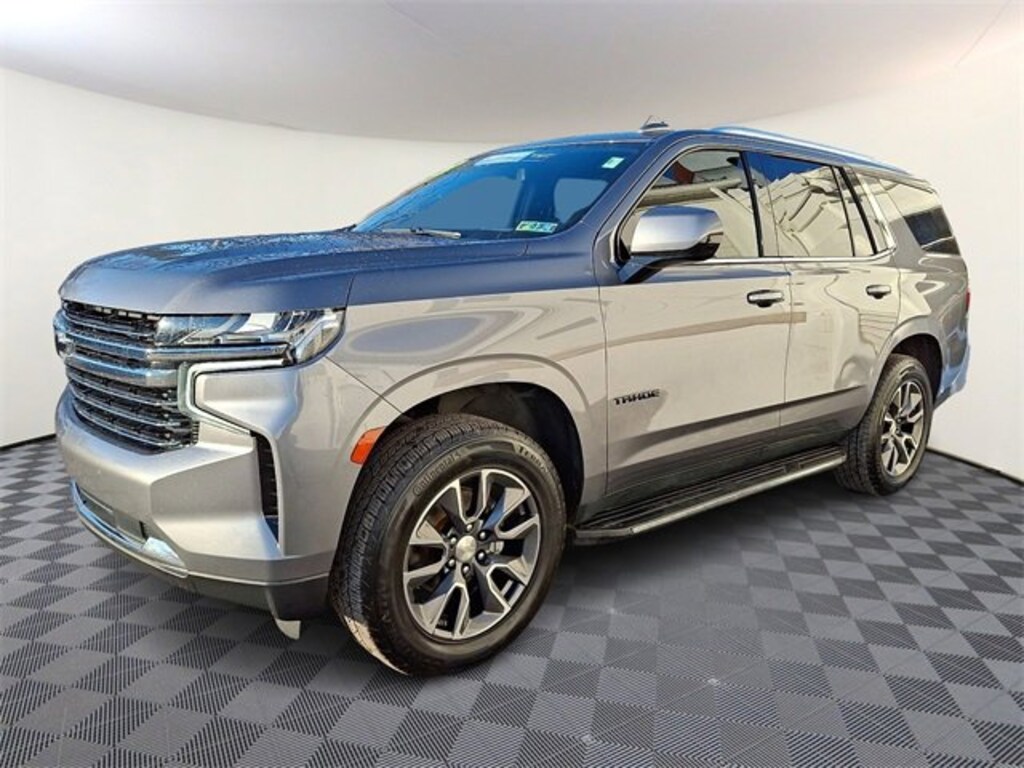 2021 Chevrolet Tahoe LT Satin Steel Metallic 4D Sport Utility 4WD Chevrolet Certified Pre-Owned Certified, 4WD, Black Leather, 10-Way Power Driver & Passenger Seat Adjusters, 1st & 2nd Row Color-Keyed Carpeted Floor Mats, 2 USB Data Ports, Apple CarPlay/Android Auto, Auto-Dimming Inside Rear-View Mirror, Bose 9-Speaker Stereo Audio System Feature, Bright Front & Rear Door Sill Plates, Color-Keyed Carpeting Floor Covering, Driver & Front Outboard Passenger Airbags, Emergency communication system: OnStar and Chevrolet connected services capable, Floor Console w/Storage Area, Hands-Free Rear Power Programmable Liftgate, HD Radio, Infotainment Display, Leather-Wrapped Steering Wheel, LED Daytime Running Lamps, Memory Settings for Driver, Power Liftgate, Preferred Equipment Group 1LT, Premium Smooth Ride Suspension, Remote Start, SiriusXM Radio w/360L, Universal Home Remote, Wheels: 20 x 9 Painted Aluminum, 3.23 Rear Axle Ratio, 3rd row seats: split-bench, 4-Wheel Disc Brakes, 9 Speakers, ABS brakes, Air Conditioning, Alloy wheels, AM/FM radio: SiriusXM with 360L, Auto High-beam Headlights, Auto-dimming Rear-View mirror, Automatic temperature control, Brake assist, Bumpers: body-color, Compass, Delay-off headlights, Driver door bin, Driver vanity mirror, Dual front impact airbags, Dual front side impact airbags, Electronic Stability Control, Four wheel independent suspension, Front anti-roll bar, Front Bucket Seats, Front Center Armrest, Front dual zone A/C, Front High-Back Reclining Bucket Seats, Front reading lights, Fully automatic headlights, Garage door transmitter, Heated door mirrors, Heated Driver & Front Passenger Seats, Heated front seats, Illuminated entry, Leather Seat Trim, Leather steering wheel, License Plate Front Mounting Package, Low tire pressure warning, Memory seat, Not Equipped w/Automatic Stop/Start, Not Equipped w/Steering Column Lock, Not Equipped w/Wireless Charging, Occupant sensing airbag, Outside temperature display, Overhead airbag, Overhead console, Panic alarm, Passenger door bin, Passenger vanity mirror, Power door mirrors, Power driver seat, Power passenger seat, Power steering, Power windows, Premium audio system: Chevrolet Infotainment 3, Radio: Chevrolet Infotainment 3 Plus System, Rain sensing wipers, Rear air conditioning, Rear anti-roll bar, Rear reading lights, Rear seat center armrest, Rear window defroster, Rear window wiper, Remote keyless entry, Roof rack: rails only, Security system, Speed control, Speed-sensing steering, Split folding rear seat, Spoiler, Steering wheel mounted audio controls, Tachometer, Telescoping steering wheel, Tilt steering wheel, Traction control, Trip computer, Variably intermittent wipers, Voltmeter, Wheels: 18 x 8.5 Bright Silver Painted Aluminum, 4WD, Black Leather, 10-Way Power Driver & Passenger Seat Adjusters, 1st & 2nd Row Color-Keyed Carpeted Floor Mats, 2 USB Data Ports, Apple CarPlay/Android Auto, Auto-Dimming Inside Rear-View Mirror, Bose 9-Speaker Stereo Audio System Feature, Bright Front & Rear Door Sill Plates, Color-Keyed Carpeting Floor Covering, Driver & Front Outboard Passenger Airbags, Emergency communication system: OnStar and Chevrolet connected services capable, Floor Console w/Storage Area, Hands-Free Rear Power Programmable Liftgate, HD Radio, Infotainment Display, Leather-Wrapped Steering Wheel, LED Daytime Running Lamps, Memory Settings for Driver, Power Liftgate, Preferred Equipment Group 1LT, Premium Smooth Ride Suspension, Remote Start, SiriusXM Radio w/360L, Universal Home Remote, Wheels: 20 x 9 Painted Aluminum. EcoTec3 5.3L V8