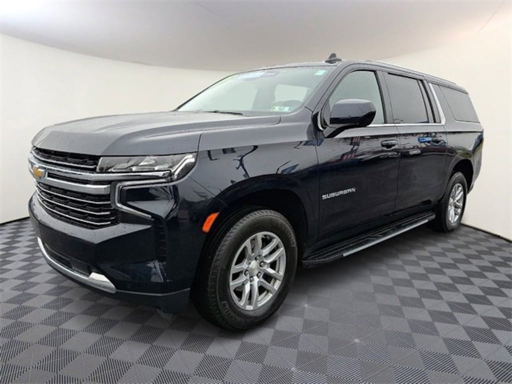 2023 Chevrolet Suburban LT Midnight Blue Metallic 4D Sport Utility 4WD Chevrolet Certified Pre-Owned Certified, 10-Way Power Driver & Passenger Seat Adjusters, 1st & 2nd Row Color-Keyed Carpeted Floor Mats, AM/FM radio: SiriusXM with 360L, Apple CarPlay/Android Auto, Auto-Dimming Inside Rear-View Mirror, Bose 9-Speaker Stereo Audio System Feature, Bright Front & Rear Door Sill Plates, Color-Keyed Carpeting Floor Covering, Driver & Front Outboard Passenger Airbags, Emergency communication system: OnStar and Chevrolet connected services capable, Enhanced Driver Information Center, Floor Console w/Storage Area, Garage door transmitter, Hands-Free Rear Power Programmable Liftgate, Heated Driver & Front Passenger Seats, Infotainment Display, Leather-Appointed Seating, LED Daytime Running Lamps, Memory seat, Memory Settings For Driver, Navigation System, Power Liftgate, Preferred Equipment Group 1LT, Premium audio system: Chevrolet Infotainment 3 Premium, Remote Start, SiriusXM Radio w/360L, Universal Home Remote, Wheels: 18 x 8.5 Bright Silver Painted Aluminum, Wireless Charging, Wrapped Steering Wheel, 3.23 Rear Axle Ratio, 3rd row seats: split-bench, 4-Wheel Disc Brakes, 9 Speakers, ABS brakes, Air Conditioning, Alloy wheels, Auto High-beam Headlights, Auto-dimming Rear-View mirror, Automatic temperature control, Brake assist, Bumpers: body-color, Compass, Delay-off headlights, Deleted 3 Years of Remote Access, Driver door bin, Driver vanity mirror, Dual front impact airbags, Dual front side impact airbags, Electronic Stability Control, Four wheel independent suspension, Front anti-roll bar, Front Bucket Seats, Front Center Armrest, Front dual zone A/C, Front reading lights, Fully automatic headlights, Heated door mirrors, Heated front seats, Illuminated entry, Low tire pressure warning, Occupant sensing airbag, Outside temperature display, Overhead airbag, Overhead console, Panic alarm, Passenger door bin, Passenger vanity mirror, Power door mirrors, Power driver seat, Power passenger seat, Power steering, Power windows, Premium Smooth Ride Suspension, Radio: Chevrolet Infotainment 3 Premium System, Rain sensing wipers, Rear air conditioning, Rear anti-roll bar, Rear reading lights, Rear seat center armrest, Rear window defroster, Rear window wiper, Remote keyless entry, Roof rack: rails only, Security system, Speed control, Speed-sensing steering, Split folding rear seat, Spoiler, Steering wheel mounted audio controls, Tachometer, Telescoping steering wheel, Tilt steering wheel, Traction control, Trip computer, Variably intermittent wipers, Voltmeter, 10-Way Power Driver & Passenger Seat Adjusters, 1st & 2nd Row Color-Keyed Carpeted Floor Mats, AM/FM radio: SiriusXM with 360L, Apple CarPlay/Android Auto, Auto-Dimming Inside Rear-View Mirror, Bose 9-Speaker Stereo Audio System Feature, Bright Front & Rear Door Sill Plates, Color-Keyed Carpeting Floor Covering, Driver & Front Outboard Passenger Airbags, Emergency communication system: OnStar and Chevrolet connected services capable, Enhanced Driver Information Center, Floor Console w/Storage Area, Garage door transmitter, Hands-Free Rear Power Programmable Liftgate, Heated Driver & Front Passenger Seats, Infotainment Display, Leather-Appointed Seating, LED Daytime Running Lamps, Memory seat, Memory Settings For Driver, Navigation System, Power Liftgate, Preferred Equipment Group 1LT, Premium audio system: Chevrolet Infotainment 3 Premium, Remote Start, SiriusXM Radio w/360L, Universal Home Remote, Wheels: 18 x 8.5 Bright Silver Painted Aluminum, Wireless Charging, Wrapped Steering Wheel. EcoTec3 5.3L V8