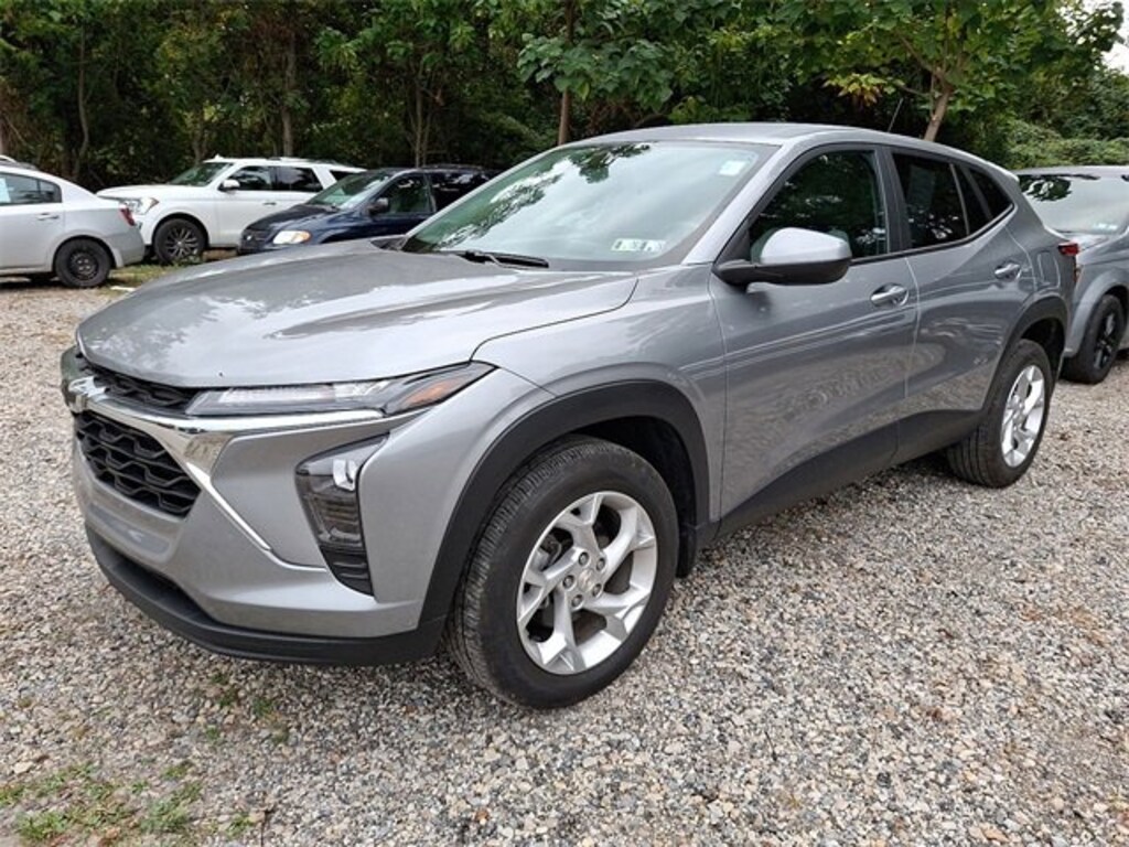2024 Chevrolet Trax LS Sterling Gray Metallic 4D Sport Utility FWD AM/FM radio: SiriusXM, Body-Color Painted Mirror Caps, Carpeted Rear Floor Mats, Driver Confidence Package, Emergency communication system: OnStar and Chevrolet connected services capable, Heated Driver & Front Passenger Seats, Heated Power-Adjustable Outside Mirrors, Lane Change Alert w/Side Blind Zone Alert, LS Convenience Package, Preferred Equipment Group 1LS, Premium audio system: Chevrolet Infotainment 3, Rear Cross-Traffic Alert, Rear Park Assist, Remote Start, Wheels: 17 Silver Painted Aluminum, 17 Steel Wheels w/Wheel Covers, 2-Way Adjustable Front Head Restraints, 3.50 Final Drive Axle Ratio, 4 Speakers, 4-Speaker Audio System Feature, 4-Way Manual Front Passenger Seat Adjuster, 4-Wheel Disc Brakes, 6-Way Manual Driver Seat Adjuster, ABS brakes, Air Conditioning, Auto High-beam Headlights, Brake assist, Bumpers: body-color, Cloth Seat Trim, Compass, Delay-off headlights, Driver door bin, Driver vanity mirror, Dual front impact airbags, Dual front side impact airbags, Electronic Stability Control, Exterior Parking Camera Rear, Front & Rear Black Bowtie Emblems (LPO), Front & Rear Custom Molded Splash Guards, Front anti-roll bar, Front Bucket Seats, Front Center Armrest, Front reading lights, Front wheel independent suspension, Fully automatic headlights, Illuminated entry, Low tire pressure warning, Occupant sensing airbag, Outside temperature display, Overhead airbag, Overhead console, Panic alarm, Passenger door bin, Passenger vanity mirror, Power door mirrors, Power steering, Power windows, Radio data system, Radio: Chevrolet Infotainment 3 System w/AM/FM, Rear Park Assist (DISC), Rear window defroster, Rear window wiper, Remote keyless entry, Security system, SiriusXM, Speed control, Split folding rear seat, Spoiler, Steering wheel mounted audio controls, Tachometer, Telescoping steering wheel, Tilt steering wheel, Traction control, Trip computer, Variably intermittent wipers, AM/FM radio: SiriusXM, Body-Color Painted Mirror Caps, Carpeted Rear Floor Mats, Driver Confidence Package, Emergency communication system: OnStar and Chevrolet connected services capable, Heated Driver & Front Passenger Seats, Heated Power-Adjustable Outside Mirrors, Lane Change Alert w/Side Blind Zone Alert, LS Convenience Package, Preferred Equipment Group 1LS, Premium audio system: Chevrolet Infotainment 3, Rear Cross-Traffic Alert, Rear Park Assist, Remote Start, Wheels: 17 Silver Painted Aluminum. 1.2L Ecotec Turbo DOHC DI w/VVT
