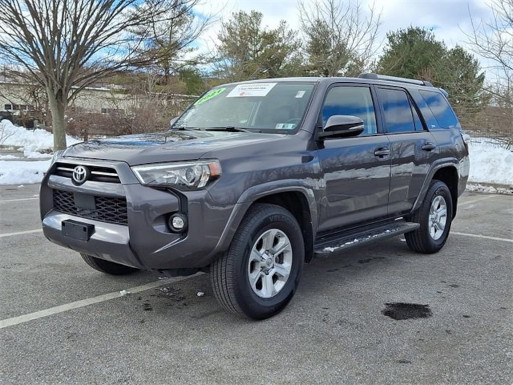 Here is a list of the vehicles features SR5 Premium Package w/Softex (Body Color Heated Mirrors, Garage Door Opener, and Wireless Smart Entry Door Lock), 4Runner SR5 Premium, Toyota Gold Certified Certified, 4D Sport Utility, 4.0L V6 SMPI DOHC, 5-Speed Automatic with Overdrive, 4WD, Magnetic Gray Metallic, Black/Graphite w/Softex Synthetic Leather Seat Trim, 17" x 7.0" 6-Spoke Alloy Wheels, 3.727 Axle Ratio, 4-Wheel Disc Brakes, 8 Speakers, ABS brakes, Air Conditioning, Alloy wheels, AM/FM radio: SiriusXM, Anti-whiplash front head restraints, Apple CarPlay/Android Auto, Auto High-beam Headlights, Auto-dimming Rear-View mirror, Brake assist, Bumpers: body-color, Compass, Driver door bin, Driver vanity mirror, Dual front impact airbags, Dual front side impact airbags, Electronic Stability Control, Emergency communication system: Safety Connect with 1-year trial, Exterior Parking Camera Rear, Front anti-roll bar, Front Bucket Seats, Front Center Armrest, Front fog lights, Front reading lights, Front wheel independent suspension, Garage door transmitter: HomeLink, Heated door mirrors, Heated Front Bucket Seats, Heated front seats, Illuminated entry, Knee airbag, Leather Shift Knob, Leather steering wheel, Low tire pressure warning, Occupant sensing airbag, Outside temperature display, Overhead airbag, Overhead console, Panic alarm, Passenger door bin, Passenger vanity mirror, Power door mirrors, Power driver seat, Power passenger seat, Power steering, Power windows, Radio: Premium Audio w/Dynamic Navigation, Rear anti-roll bar, Rear seat center armrest, Rear window defroster, Rear window wiper, Remote keyless entry, Roof rack: rails only, Security system, Softex Synthetic Leather Seat Trim, Speed control, Speed-sensing steering, Split folding rear seat, Spoiler, Steering wheel mounted audio controls, Tachometer, Telescoping steering wheel, Tilt steering wheel, Traction control, Trip computer, Turn signal indicator mirrors, and Variably intermittent wipers TSRP is not the sales price and does not include taxes, tags, title, adjusted market value, dealer installed equipment (if applicable), and $490 dealer documentary fee.