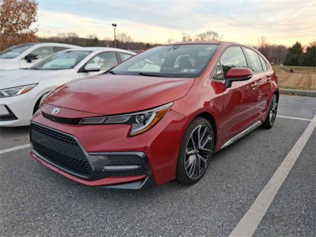 Here is a list of the vehicles features Corolla SE, Toyota Gold Certified Certified, 4D Sedan, 2.0L I4 DOHC 16V, CVT, FWD, Barcelona Red Metallic, Moonstone w/Premium Fabric Seat Trim, 18" Machined Alloy Wheels, 4-Wheel Disc Brakes, 6 Speakers, ABS brakes, Air Conditioning, Alloy wheels, AM/FM radio: SiriusXM, Apple CarPlay/Android Auto, Auto High-beam Headlights, Automatic temperature control, Brake assist, Bumpers: body-color, Delay-off headlights, Driver door bin, Driver vanity mirror, Dual front impact airbags, Dual front side impact airbags, Electronic Stability Control, Emergency communication system: Safety Connect with 1-year trial, Exterior Parking Camera Rear, Four wheel independent suspension, Front anti-roll bar, Front Bucket Seats, Front Center Armrest, Front reading lights, Front Sport Seats, Fully automatic headlights, Heated door mirrors, Illuminated entry, Knee airbag, Leather Shift Knob, Low tire pressure warning, Occupant sensing airbag, Outside temperature display, Overhead airbag, Panic alarm, Passenger door bin, Passenger vanity mirror, Power door mirrors, Power steering, Power windows, Premium Fabric Seat Trim, Radio data system, Radio: Audio, Rear anti-roll bar, Rear seat center armrest, Rear side impact airbag, Rear window defroster, Remote keyless entry, Security system, Speed control, Split folding rear seat, Spoiler, Steering wheel mounted audio controls, Tachometer, Telescoping steering wheel, Tilt steering wheel, Traction control, Trip computer, Turn signal indicator mirrors, and Variably intermittent wipers TSRP is not the sales price and does not include taxes, tags, title, adjusted market value, dealer installed equipment (if applicable), and $477 dealer documentary fee.