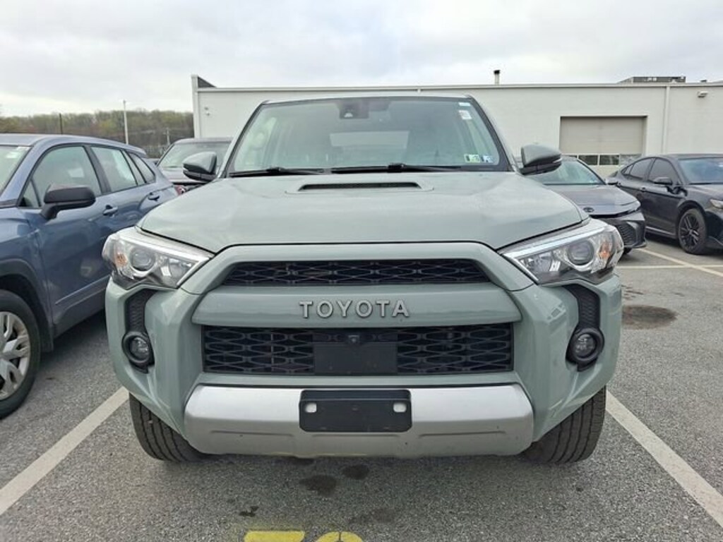 Here is a list of the vehicles features Moonroof Package (Moonroof w/Tilt Up & Slide), Off Road Package (Black Roof Rails), Off Road Premium Plus Package w/SofTex (Blind Spot Monitor (BSM), Garage Door Opener, Multi-Terrain Back Monitor, and Outside Rear View Mirror), 4Runner TRD Off-Road Premium, Toyota Gold Certified Certified, 4D Sport Utility, 4.0L V6 DOHC 24V, 5-Speed with ECT, 4WD, Lunar, Graphite Premium Synthetic, 3.727 Axle Ratio, 4-Wheel Disc Brakes, 8 Speakers, ABS brakes, Air Conditioning, All-Weather Floor Liners/Cargo Tray (PPO) (TMS), Alloy wheels, AM/FM radio: SiriusXM, Anti-whiplash front head restraints, Apple CarPlay/Android Auto, Auto High-beam Headlights, Auto-dimming Rear-View mirror, Blackout Emblem Overlays (PPO) (TMS), Brake assist, Bumpers: body-color, Compass, Driver door bin, Driver vanity mirror, Dual front impact airbags, Dual front side impact airbags, Dual Power Ports/Quick Charge Cable Pkg (PPO) (TMS), Electronic Stability Control, Emergency communication system: Safety Connect with 1-year trial, Exterior Parking Camera Rear, Front anti-roll bar, Front Bucket Seats, Front Center Armrest, Front fog lights, Front reading lights, Front wheel independent suspension, Garage door transmitter: HomeLink, Heated door mirrors, Heated Front Bucket Seats, Heated front seats, High Performance LED Fog Lights (PPO) (TMS), Illuminated entry, Knee airbag, Leather Shift Knob, Low tire pressure warning, Occupant sensing airbag, Outside temperature display, Overhead airbag, Overhead console, Panic alarm, Passenger door bin, Passenger vanity mirror, Power door mirrors, Power driver seat, Power passenger seat, Power steering, Power windows, Predator Tube Step (PPO) (TMS), Radio: Premium Audio w/Dynamic Navigation, Rear anti-roll bar, Rear seat center armrest, Rear window defroster, Rear window wiper, Remote keyless entry, Roof Rack Cross Bars (PPO) (TMS), Roof rack: rails only, Security system, SofTex Seat Trim, Speed control, Speed-sensing steering, Split folding rear seat, Spoiler, Steering wheel mounted audio controls, Tachometer, Telescoping steering wheel, Tilt steering wheel, Traction control, Trip computer, Turn signal indicator mirrors, Variably intermittent wipers, and Wheels: 17" Unique 7-Spoke Off-Road Alloy TSRP is not the sales price and does not include taxes, tags, title, adjusted market valu