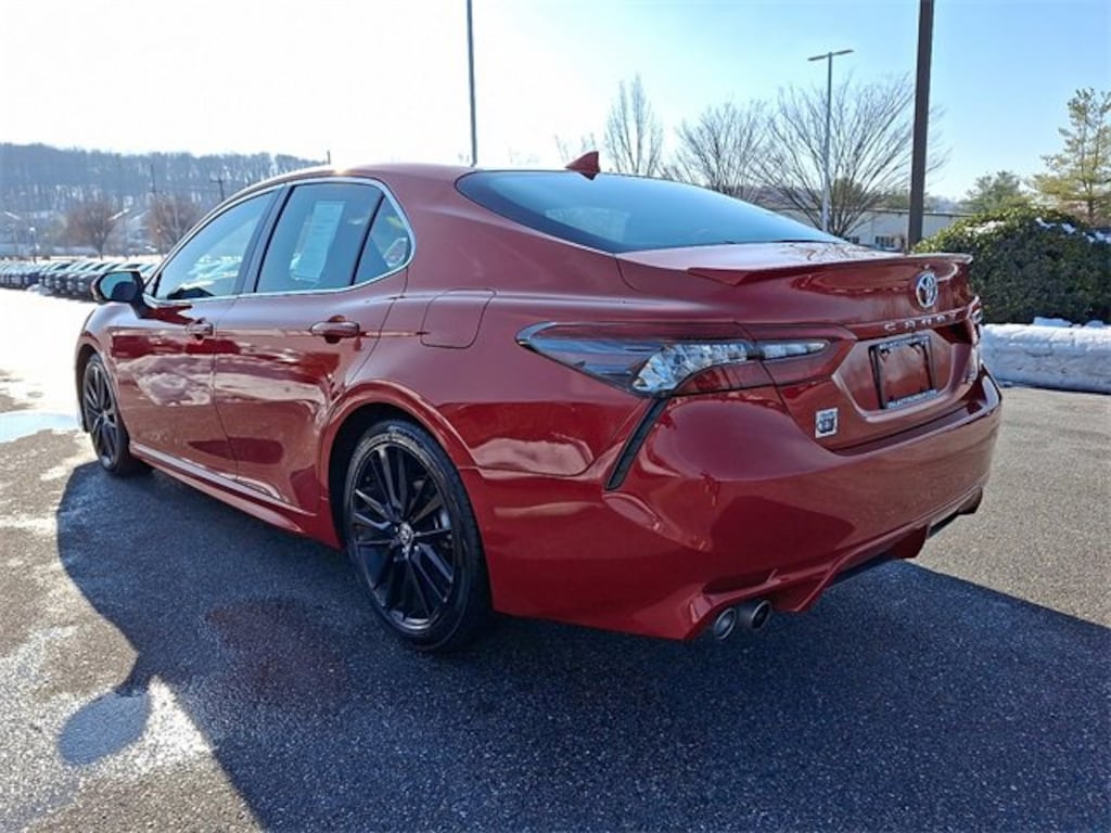 Here is a list of the vehicles features Camry XSE, Toyota Gold Certified Certified, 4D Sedan, 2.5L I4 DOHC 16V, 8-Speed Automatic, FWD, Supersonic Red, Black w/Perforated Leather Seat Trim, 4-Wheel Disc Brakes, 6 Speakers, ABS brakes, Air Conditioning, Alloy wheels, AM/FM radio: SiriusXM, Apple CarPlay/Android Auto, Auto High-beam Headlights, Auto-dimming Rear-View mirror, Automatic temperature control, Brake assist, Bumpers: body-color, Delay-off headlights, Driver door bin, Driver vanity mirror, Dual front impact airbags, Dual front side impact airbags, Electronic Stability Control, Emergency communication system: Safety Connect (1-year trial), Exterior Parking Camera Rear, Four wheel independent suspension, Front anti-roll bar, Front Bucket Seats, Front Center Armrest, Front dual zone A/C, Front reading lights, Fully automatic headlights, Garage door transmitter: HomeLink, Heated door mirrors, Heated front seats, Illuminated entry, Knee airbag, Leather steering wheel, Low tire pressure warning, Multi-Stage Heated Front Bucket Seats, Occupant sensing airbag, Outside temperature display, Overhead airbag, Overhead console, Panic alarm, Passenger door bin, Passenger vanity mirror, Perforated Leather Seat Trim, Power door mirrors, Power driver seat, Power passenger seat, Power steering, Power windows, Radio data system, Radio: Audio Plus, Rear anti-roll bar, Rear reading lights, Rear seat center armrest, Rear side impact airbag, Rear window defroster, Remote keyless entry, Security system, Speed control, Speed-sensing steering, Split folding rear seat, Spoiler, Steering wheel mounted audio controls, Tachometer, Telescoping steering wheel, Tilt steering wheel, Traction control, Trip computer, Turn signal indicator mirrors, Variably intermittent wipers, and Wheels: 8.0J x 19" Alloy TSRP is not the sales price and does not include taxes, tags, title, adjusted market value, dealer installed equipment (if applicable), and $477 dealer documentary fee.