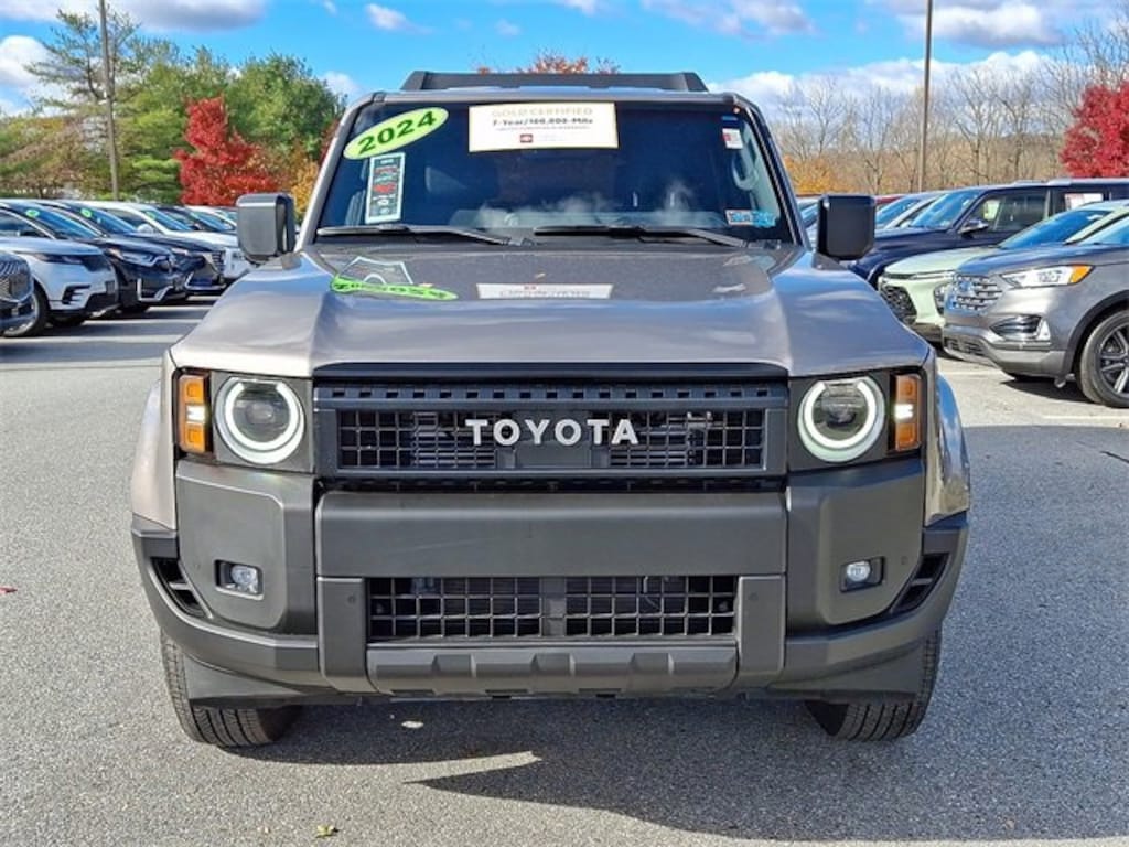 Here is a list of the vehicles features Land Cruiser 1958, Toyota Gold Certified Certified, 4D Sport Utility, 2.4L 4-Cylinder, 8-Speed Automatic, 4WD, Meteor Shower, Black w/Fabric Seat Trim, 18" x 7J Alloy Wheels, 4-Wheel Disc Brakes, 6 Speakers, ABS brakes, Air Conditioning, Alloy wheels, AM/FM radio: SiriusXM, Apple CarPlay/Android Auto, Auto High-beam Headlights, Auto-dimming Rear-View mirror, Automatic temperature control, Axle Ratio: TBD, Brake assist, Compass, Delay-off headlights, Driver door bin, Driver vanity mirror, Dual front impact airbags, Dual front side impact airbags, Electronic Stability Control, Emergency communication system: Safety Connect (up to 10-year trial subscription), Exterior Parking Camera Rear, Fabric Seat Trim, Front anti-roll bar, Front Bucket Seats, Front Center Armrest, Front dual zone A/C, Front fog lights, Front reading lights, Front wheel independent suspension, Fully automatic headlights, Garage door transmitter: HomeLink, Heated Front Seats, Heated front seats, Heated steering wheel, Knee airbag, Leather Shift Knob, Leather steering wheel, Low tire pressure warning, Occupant sensing airbag, Outside temperature display, Overhead airbag, Overhead console, Panic alarm, Passenger door bin, Passenger vanity mirror, Power door mirrors, Power steering, Power windows, Radio data system, Radio: Toyota Audio Multimedia System, Rain sensing wipers, Rear air conditioning, Rear anti-roll bar, Rear reading lights, Rear seat center armrest, Rear window defroster, Rear window wiper, Remote keyless entry, Security system, Speed control, Speed-sensing steering, Split folding rear seat, Spoiler, Steering wheel mounted audio controls, Telescoping steering wheel, Tilt steering wheel, Traction control, Trip computer, Turn signal indicator mirrors, and Variably intermittent wipers TSRP is not the sales price and does not include taxes, tags, title, adjusted market value, dealer installed equipment (if applicable), and $477 dealer documentary fee.
