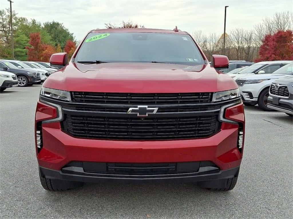 Here is a list of the vehicles features Driver Alert Package (Lane Change Alert w/Side Blind Zone Alert and Rear Cross Traffic Alert), Interior Protection Package (LPO) (3rd Row All-Weather Floor Liners (LPO), All-Weather Cargo Mat (LPO), and All-Weather Floor Mats), Luxury Package (2nd Row Pwr Release 60/40 Split-Folding Bench Seat, 3rd Row 60/40 Power-Folding Split-Bench Seat, Adaptive Cruise Control, Enhanced Automatic Emergency Braking, HD Surround Vision, Heated 2nd Row Outboard Seats, Heated Steering Wheel, Memory Settings, Outside Heated Power-Adjustable Mirrors, Power Tilt & Telescopic Steering Column, and Rear Pedestrian Alert), Preferred Equipment Group 1SP (1st & 2nd Row Color-Keyed Carpeted Floor Mats, Auto-Dimming Inside Rear-View Mirror, Bose 9-Speaker Stereo Audio System Feature, Bright Front & Rear Door Sill Plates, Color-Keyed Carpeting Floor Covering, Driver & Front Outboard Passenger Airbags, Enhanced Driver Information Center, Floor Console w/Storage Area, Hands-Free Rear Power Programmable Liftgate, LED Daytime Running Lamps, Memory Settings for Driver, Remote Start, SiriusXM w/360L, Universal Home Remote, Wireless Charging, and Wrapped Steering Wheel), Tahoe RST, 4D Sport Utility, EcoTec3 5.3L V8, 10-Speed Automatic with Overdrive, 4WD, Radiant Red Tintcoat, Jet Black/Victory Red Leather, 10-Way Power Driver & Passenger Seat Adjusters, 1st, 2nd & 3rd Rows All-Weather Floor Liners (LPO), 2 USB Data Ports in Center Console Delete, 3.23 Rear Axle Ratio, 3rd row seats: split-bench, 4-Wheel Disc Brakes, 9 Speakers, ABS brakes, Air Conditioning, Alloy wheels, AM/FM radio: SiriusXM with 360L, Apple CarPlay/Android Auto, Auto High-beam Headlights, Auto-dimming Rear-View mirror, Automatic temperature control, Brake assist, Bumpers: body-color, Cargo Security Shade (LPO), Compass, Delay-off headlights, Driver door bin, Driver vanity mirror, Dual front impact airbags, Dual front side impact airbags, Dual-Pane Power Panoramic Sunroof, Electronic Stability Control, Emergency communication system: OnStar and Chevrolet connected services capable, Floor Console, Four wheel independent suspension, Front anti-roll bar, Front Bucket Seats, Front Center Armrest, Front dual zone A/C, Front High-Back Reclining Bucket Seats, Front reading lights, Fully automatic headlights, Garage door transmitter, Heated door mirrors, Heated Driver & Front Passenger Seats, Heated front seats, Illuminated entry, Infotainment Display, Low tire pressure warning, Memory seat, Navigation System, Occupant sensing airbag, Outside temperature display, Overhead airbag, Overhead console, Panic alarm, Passenger door bin, Passenger vanity mirror, Perforated Leather Seat Trim, Power door mirrors, Power driver seat, Power Liftgate, Power passenger seat, Power Release 2nd Row Bucket Seats, Power steering, Power windows, Premium audio system: Chevrolet Infotainment 3 Premium, Premium Smooth Ride Suspension, Radio: Chevrolet Infotainment 3 Premium System, Rain sensing wipers, Rear air conditioning, Rear anti-roll bar, Rear reading lights, Rear seat center armrest, Rear window defroster, Rear window wiper, Remote keyless entry, Roof rack: xxxxxx, Security s