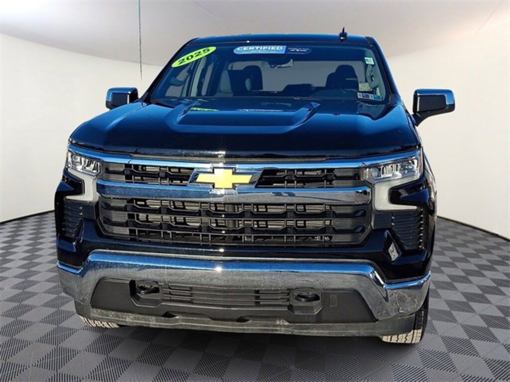 2025 Chevrolet Silverado 1500 LT LT1 Black 4D Crew Cab 4WD Chevrolet Certified Pre-Owned Certified, 10-Speed Automatic, 4WD, Black Cloth, 10-Way Power Driver Seat w/Lumbar, 12.3 Multicolor Reconfigurable Digital Display, 120-Volt Bed Mounted Power Outlet, 120-Volt Interior Power Outlet, 6-Speaker Audio System, All-Star Edition, AM/FM radio: SiriusXM with 360L, Apple CarPlay/Android Auto, Auto-Locking Rear Differential, Bluetooth® For Phone, Chrome Mirror Caps, Color-Keyed Carpeting Floor Covering, Convenience Package, Deep-Tinted Glass, Dual Rear USB Ports (Charge Only), Dual-Zone Automatic Climate Control, Electric Rear-Window Defogger, Electronic Cruise Control, Emergency communication system: OnStar, EZ Lift Power Lock & Release Tailgate, Front Frame-Mounted Black Recovery Hooks, Front Rubberized Vinyl Floor Mats, HD Rear Vision Camera, Heated Driver & Front Outboard Passenger Seats, Heated Power-Adjustable Outside Mirrors, Heated Steering Wheel, Hitch Guidance, Inside Rear-View Mirror w/Tilt, Integrated Trailer Brake Controller, Keyless Open & Start, LED Cargo Area Lighting, Manual Tilt/Telescoping Steering Column, OnStar Services Capable, Power Front Windows w/Driver Express Up/Down, Power Front Windows w/Passenger Express Down, Power Rear Windows w/Express Down, Preferred Equipment Group 1LT, Rear 60/40 Folding Bench Seat (Folds Up), Remote Start Package, Remote Vehicle Starter System, SiriusXM w/360L Trial Subscription, Standard Tailgate, Steering Wheel Audio Controls, Theft Deterrent System (Unauthorized Entry), Tire Pressure Monitoring System, Trailering Package, Wheels: 17 x 8 Bright Silver Painted Aluminum, Wi-Fi Hot Spot Capable, Wrapped Steering Wheel, 170 Amp Alternator, 220 Amp Alternator, 3.23 Rear Axle Ratio, 4-Wheel Disc Brakes, 40/20/40 Front Split-Bench Seat, 6 Speakers, ABS brakes, Air Conditioning, Alloy wheels, Auto High-beam Headlights, Automatic Emergency Braking, Automatic temperature control, Auxiliary External Transmission Oil Cooler, Brake assist, Bumpers: chrome, Cloth Seat Trim, Compass, Delay-off headlights, Driver door bin, Driver vanity mirror, Dual front impact airbags, Dual front side impact airbags, Electronic Stability Control, External Engine Oil Cooler, Following Distance Indicator, Forward Collision Alert, Front anti-roll bar, Front Center Armrest w/Storage, Front dual zone A/C, Front Pedestrian Braking, Front reading lights, Front wheel independent suspension, Fully automatic headlights, Heated door mirrors, Heated front seats, Heated steering wheel, Illuminated entry, IntelliBeam Automatic High Beam On/Off, Lane Keep Assist w/Lane Departure Warning, Low tire pressure warning, Occupant sensing airbag, Outside temperature display, Overhead airbag, Overhead console, Panic alarm, Passenger door bin, Passenger vanity mirror, Power door mirrors, Power driver seat, Power steering, Power windows, Premium audio system: Chevrolet Infotainment 3 Premium, Radio data system, Radio: Chevrolet Infotainment 3 Premium System, Rear reading lights, Rear Rubberized-Vinyl Floor Mats, Rear step bumper, Rear window defroster, Remote keyless entry, Security system, Speed control, Speed-sensing steering, Split folding rear seat, Standard Suspension Package, Steering wheel mounted audio controls, Tachometer, Teen Driver, Telescoping steering wheel, Tilt steering wheel, Traction control, Trip computer, Variably intermittent wipers, Voltmeter, 10-Speed Automatic, 4WD, Black Cloth, 10-Way Power Driver Seat w/Lumbar, 12.3 Multicolor Reconfigurable Digital Display, 120-Volt Bed Mounted Power Outlet, 120-Volt Interior Power Outlet, 6-Speaker Audio System, All-Star Edition, AM/FM radio: SiriusXM with 360L, Apple