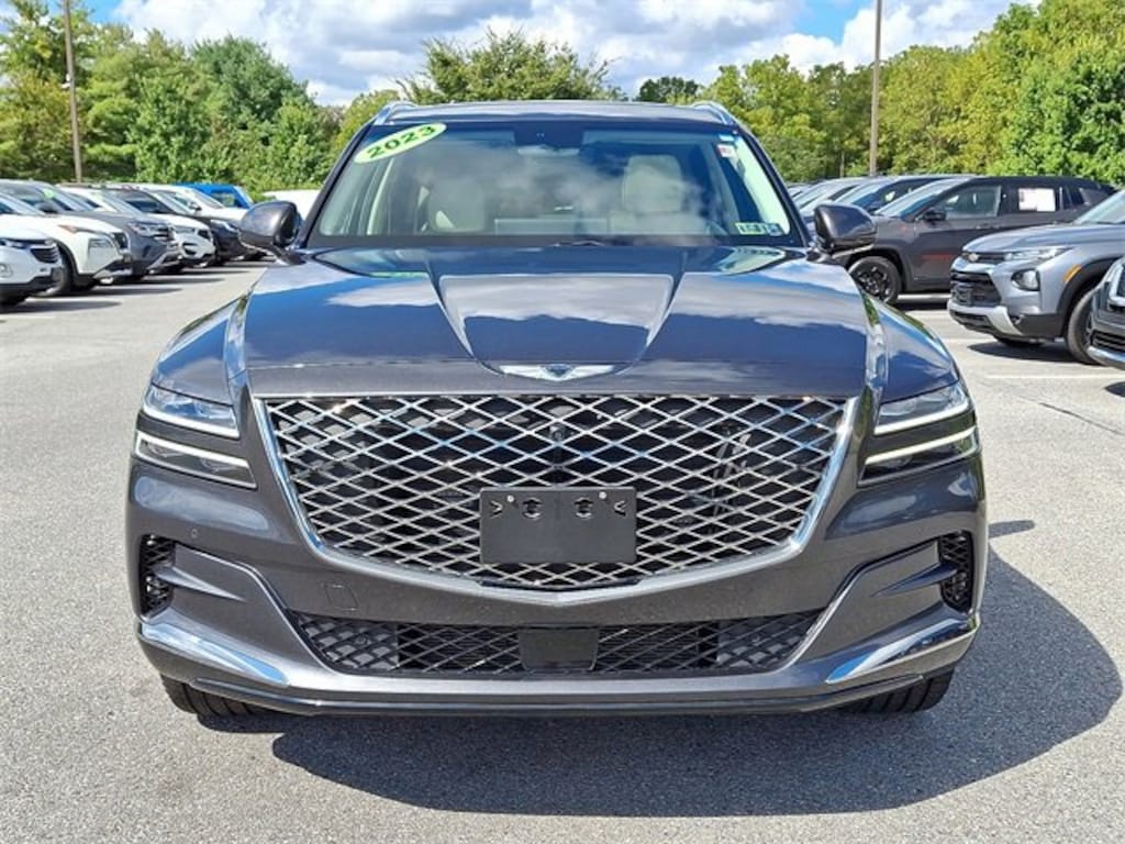 Here is a list of the vehicles features Advanced Package (Panoramic Sunroof), Prestige Package (12.3" 3D Digital Instrument Cluster, 3-Zone Climate Control, Electronically Controlled Suspension, Ergo Motion Driver Seat, Forward Attention Warning, Head-Up Display, Heated 2nd Row Seats, Option Group 04, Power Cushion Extension & Bolster, Road Active Noise Control, and Wheels: 22" x 9.5J Alloy), GV80 2.5T, 4D Sport Utility, 2.5L DOHC, 8-Speed Automatic, AWD, Himalayan Gray, Black/Beige w/Leatherette Seating Surfaces, 12 Speakers, 4-Wheel Disc Brakes, 4.363 Axle Ratio, ABS brakes, Air Conditioning, Alloy wheels, AM/FM radio: SiriusXM, Android Auto & Apple CarPlay, Anti-whiplash front head restraints, Auto High-beam Headlights, Auto tilt-away steering wheel, Auto-dimming door mirrors, Auto-dimming Rear-View mirror, Auto-leveling suspension, Automatic temperature control, Brake assist, Bumpers: body-color, Compass, Delay-off headlights, Driver door bin, Driver vanity mirror, Dual front impact airbags, Dual front side impact airbags, Electronic Stability Control, Emergency communication system: Genesis Connected Services, Exterior Parking Camera Rear, Four wheel independent suspension, Front anti-roll bar, Front Bucket Seats, Front Center Armrest, Front dual zone A/C, Front reading lights, Fully automatic headlights, Garage door transmitter: HomeLink, Genuine wood console insert, Genuine wood dashboard insert, Genuine wood door panel insert, Heated door mirrors, Heated Front Bucket Seats, Heated front seats, Heated steering wheel, Illuminated entry, Knee airbag, Leather steering wheel, Leatherette Seating Surfaces, Low tire pressure warning, Memory seat, Navigation System, Occupant sensing airbag, Outside temperature display, Overhead airbag, Overhead console, Panic alarm, Passenger door bin, Passenger vanity mirror, Power door mirrors, Power driver seat, Power Liftgate, Power passenger seat, Power steering, Power windows, Radio data system, Radio: AM/FM/SiriusXM/HD Audio System, Rain sensing wipers, Rear air conditioning, Rear anti-roll bar, Rear reading lights, Rear seat center armrest, Rear side impact airbag, Rear window defroster, Rear window wiper, Remote keyless entry, Security system, Speed control, Speed-sensing steering, Speed-Sensitive Wipers, Split folding rear seat, Spoiler, Steering wheel memory, Steering wheel mounted audio controls, Tachometer, Telescoping steering wheel, Tilt steering wheel, Traction control, Trip computer, Turn signal indicator mirrors, Variably intermittent wipers, and Wheels: 19" x 8.5J Medium Metallic Gray Alloy MSRP is not the sales price and does not include taxes, tags, title, adjusted market value, dealer installed equipment (if applicable), and $477 dealer documentary fee.
