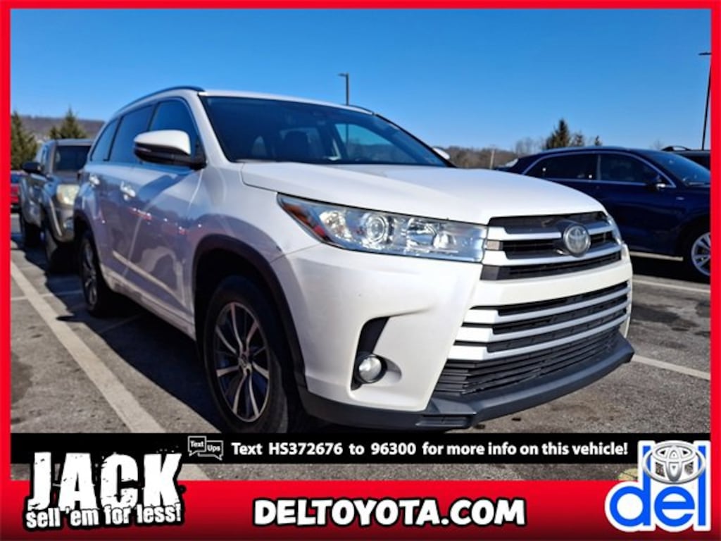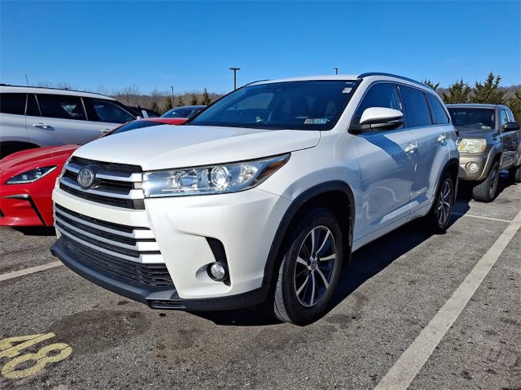 Here is a list of the vehicles features All-Weather Floor Liner Package (All Weather Floor Liners and Cargo Liner), Highlander XLE, 4D Sport Utility, 3.5L V6, 8-Speed Automatic Electronic with ECT-i, AWD, Blizzard Pearl, Black w/Leather Seat Trim, 3.003 Axle Ratio, 3rd row seats: split-bench, 4-Wheel Disc Brakes, 6 Speakers, ABS brakes, Air Conditioning, Alloy wheels, AM/FM radio: SiriusXM, Auto High-beam Headlights, Auto-dimming Rear-View mirror, Automatic temperature control, Brake assist, Bumpers: body-color, CD player, Delay-off headlights, Driver door bin, Driver vanity mirror, Dual front impact airbags, Dual front side impact airbags, Electronic Stability Control, Exterior Parking Camera Rear, Four wheel independent suspension, Front anti-roll bar, Front Bucket Seats, Front Center Armrest, Front dual zone A/C, Front fog lights, Front reading lights, Fully automatic headlights, Garage door transmitter, Heated door mirrors, Heated Front Bucket Seats, Heated front seats, Illuminated entry, Knee airbag, Leather Seat Trim, Leather Shift Knob, Low tire pressure warning, Navigation System, Occupant sensing airbag, Outside temperature display, Overhead airbag, Overhead console, Panic alarm, Passenger door bin, Passenger vanity mirror, Power door mirrors, Power driver seat, Power Liftgate, Power moonroof, Power passenger seat, Power steering, Power windows, Radio: Entune Premium Audio w/Nav & App Suite, Rear air conditioning, Rear anti-roll bar, Rear reading lights, Rear window defroster, Rear window wiper, Reclining 3rd row seat, Remote keyless entry, Roof rack: rails only, Security system, Speed control, Speed-sensing steering, Split folding rear seat, Spoiler, Steering wheel mounted audio controls, Tachometer, Telescoping steering wheel, Tilt steering wheel, Traction control, Trip computer, Turn signal indicator mirrors, Variably intermittent wipers, and Wheels: 18" Turbine-Look Alloy TSRP is not the sales price and does not include taxes, tags, title, adjusted market value, dealer installed equipment (if applicable), and $490 dealer documentary fee.