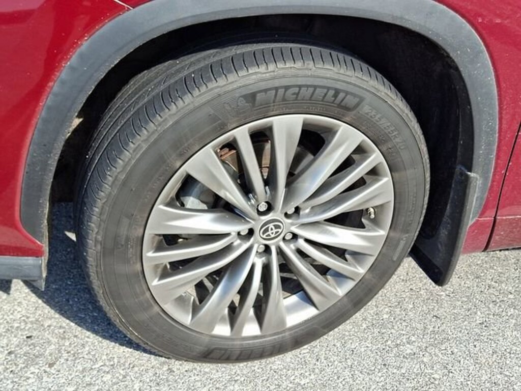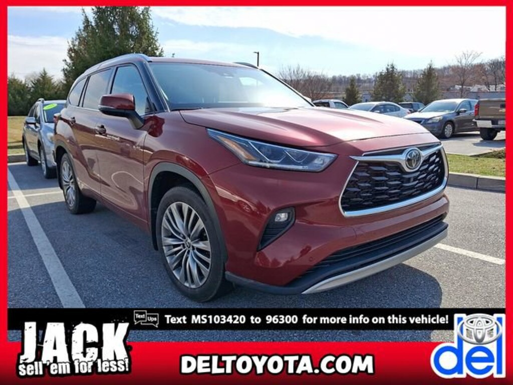 Here is a list of the vehicles features Platinum Package (Digital Rearview Mirror w/HomeLink, High Grade LED Projector Headlights, Panoramic Moonroof, and Panoramic View Monitor), Highlander Platinum, 4D Sport Utility, 3.5L V6 DOHC, 8-Speed Automatic, AWD, Ruby Flare Pearl, Graphite w/Leather Seat Trim, 11 Speakers, 20" Painted Alloy Wheels, 3.003 Axle Ratio, 3rd row seats: split-bench, 4-Wheel Disc Brakes, ABS brakes, Air Conditioning, Alloy wheels, AM/FM radio: SiriusXM, Apple CarPlay/Android Auto, Auto High-beam Headlights, Auto-dimming Rear-View mirror, Automatic temperature control, Brake assist, Bumpers: body-color, Delay-off headlights, Driver door bin, Driver vanity mirror, Dual front impact airbags, Dual front side impact airbags, Electronic Stability Control, Emergency communication system: Safety Connect with 1-year trial, Four wheel independent suspension, Front anti-roll bar, Front Bucket Seats, Front Center Armrest, Front dual zone A/C, Front fog lights, Front reading lights, Fully automatic headlights, Garage door transmitter: HomeLink, Heads-Up Display, Heated door mirrors, Heated front seats, Heated rear seats, Heated steering wheel, Heated/Ventilated Front Bucket Seats, Illuminated entry, Knee airbag, Leather Seat Trim, Leather Shift Knob, Low tire pressure warning, Memory seat, Navigation system: Dynamic Navigation (3-year trial), Occupant sensing airbag, Outside temperature display, Overhead airbag, Overhead console, Panic alarm, Passenger door bin, Passenger vanity mirror, Power door mirrors, Power driver seat, Power Liftgate, Power moonroof, Power passenger seat, Power steering, Power windows, Radio: Premium Audio w/JBL Clari-Fi, Rain sensing wipers, Rear air conditioning, Rear anti-roll bar, Rear reading lights, Rear window defroster, Rear window wiper, Reclining 3rd row seat, Remote keyless entry, Roof rack: rails only, Security system, Speed control, Speed-sensing steering, Split folding rear seat, Spoiler, Steering wheel mounted audio controls, Tachometer, Telescoping steering wheel, Tilt steering wheel, Traction control, Trip computer, Turn signal indicator mirrors, Variably intermittent wipers, and Ventilated front seats TSRP is not the sales price and does not include taxes, tags, title, adjusted market value, dealer installed equipment (if applicable), and $490 dealer documentary fee.